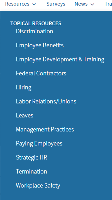 Topics are designed to be user-friendly. For example, “Paying Employees” covers all aspects of paying an employee, like compensation planning, garnishments, overtime, pay equity, and state wage laws. “Leaves” encompasses all types of leaves, both mandatory and those offered by an employer. Click here to view our Topical Resource Guide.