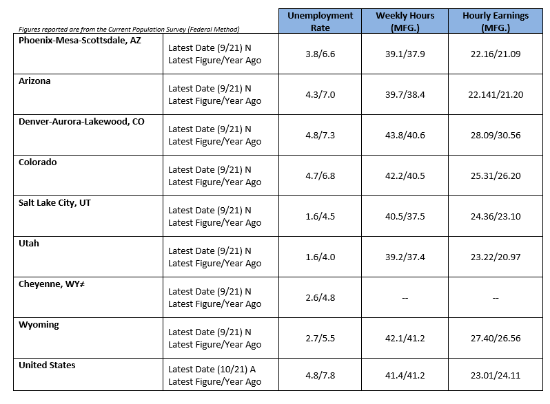 ≠ Weekly Manufacturing Hours and Hourly Manufacturing Earnings data not available for Cheyenne, Wyoming.